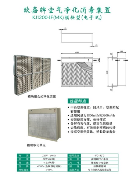 歐嘉牌空氣凈化消毒裝置KJ1200-LF(MK)模塊型(電子式)
