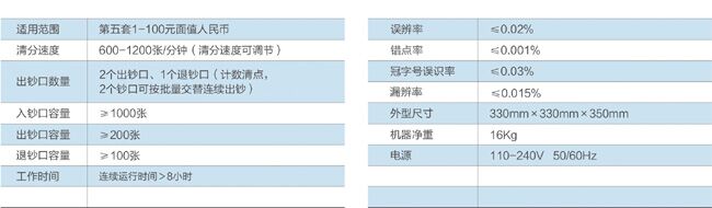 具有清分,鑒偽,計(jì)數(shù)計(jì)值等多項(xiàng)功能,根據(jù)用戶要求,任意設(shè)置流通幣挑殘,ATM配鈔,多面值清分等多種清分方式和不同出鈔方案。立式走鈔結(jié)構(gòu)設(shè)計(jì),體積小,重量輕,噪音小,獨(dú)特的防塵結(jié)構(gòu)設(shè)計(jì),適合不同場所的紙幣清分要求。 模塊化多傳感器識別設(shè)計(jì),準(zhǔn)確剔除高防真假幣和變造幣,具有快速防偽技術(shù)升級能力和網(wǎng)絡(luò)升級能力。 全面開啟式走鈔通道,方便維護(hù),維修和卡鈔處理。 高分辨LCD圖形化中英文界面顯示,操作方便,配合號碼識別信息處理軟件應(yīng)用。 現(xiàn)金清分機(jī)有一個(gè)入鈔架,兩個(gè)接鈔架及一個(gè)退鈔架,可同時(shí)分面向或左右向,當(dāng)一個(gè)載鈔架盛滿后可自動(dòng)跳至下一個(gè)。 清分面額:面額,版面(正面,背面,左,右),正損,點(diǎn)鈔功能包括數(shù)量,批量鈔票厚度檢測及防偽鈔票狀態(tài)檢測包括骯臟,破洞,裂縫,角,重鈔,缺損及膠紙。